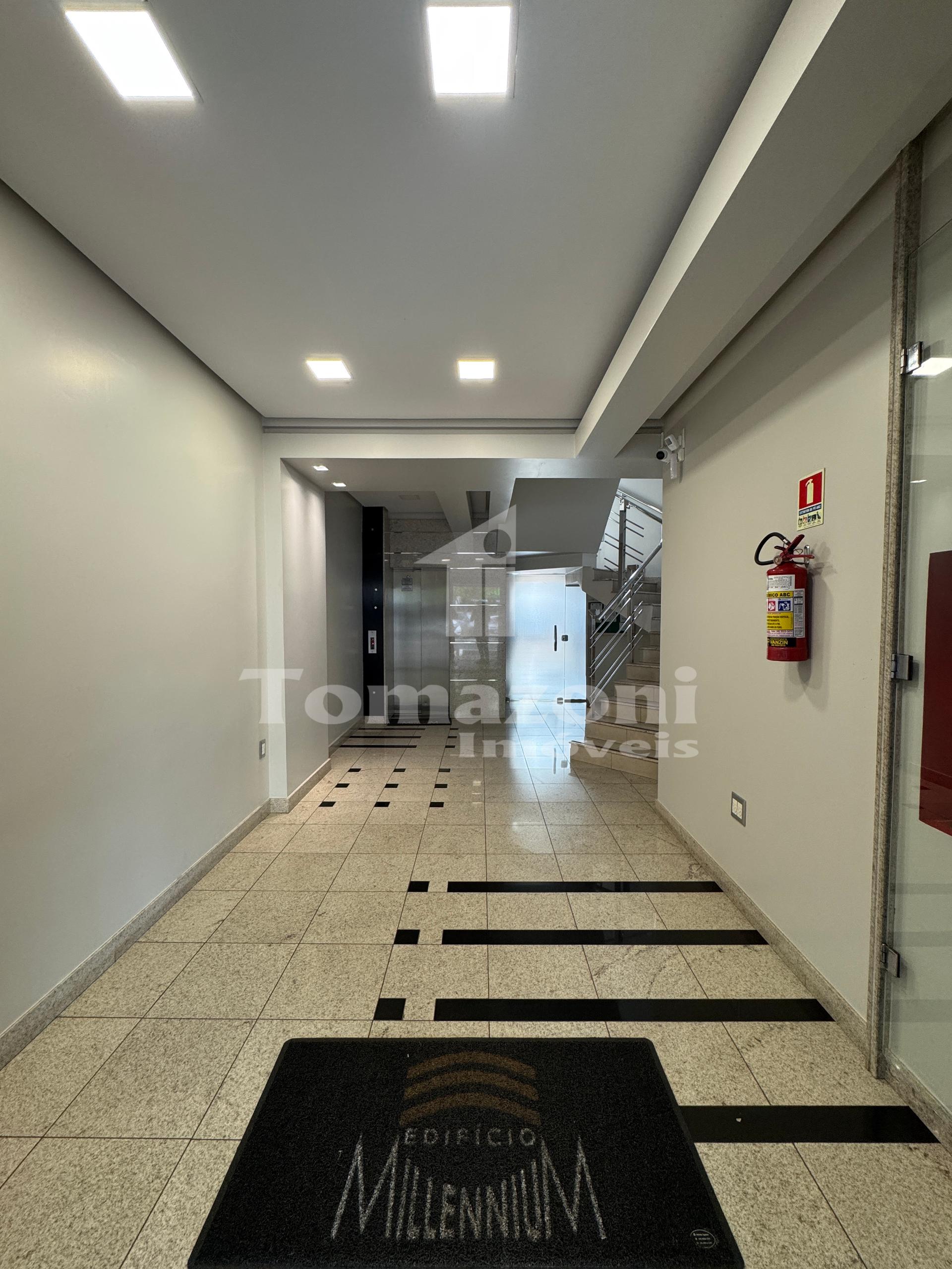 Sala comercial disponível para locação no ED. MILLENNIUM SALA Nº 205, localizada na Av. Júlio Assis Cavalheiro, nº 900, esquina com a Rua Curitiba, Centro, esquina com a Farmácia Brava, em frente ao Banco Santander, próxima à loja Via Luxo, Igreja Matriz, lojas OBA OBA e Iris Foto Collor. O imóvel contém 01 hall de entrada, 01 sala de espera, 02 salas, 01 cozinha com armários, 01 banheiro social e 01 vaga de garagem.