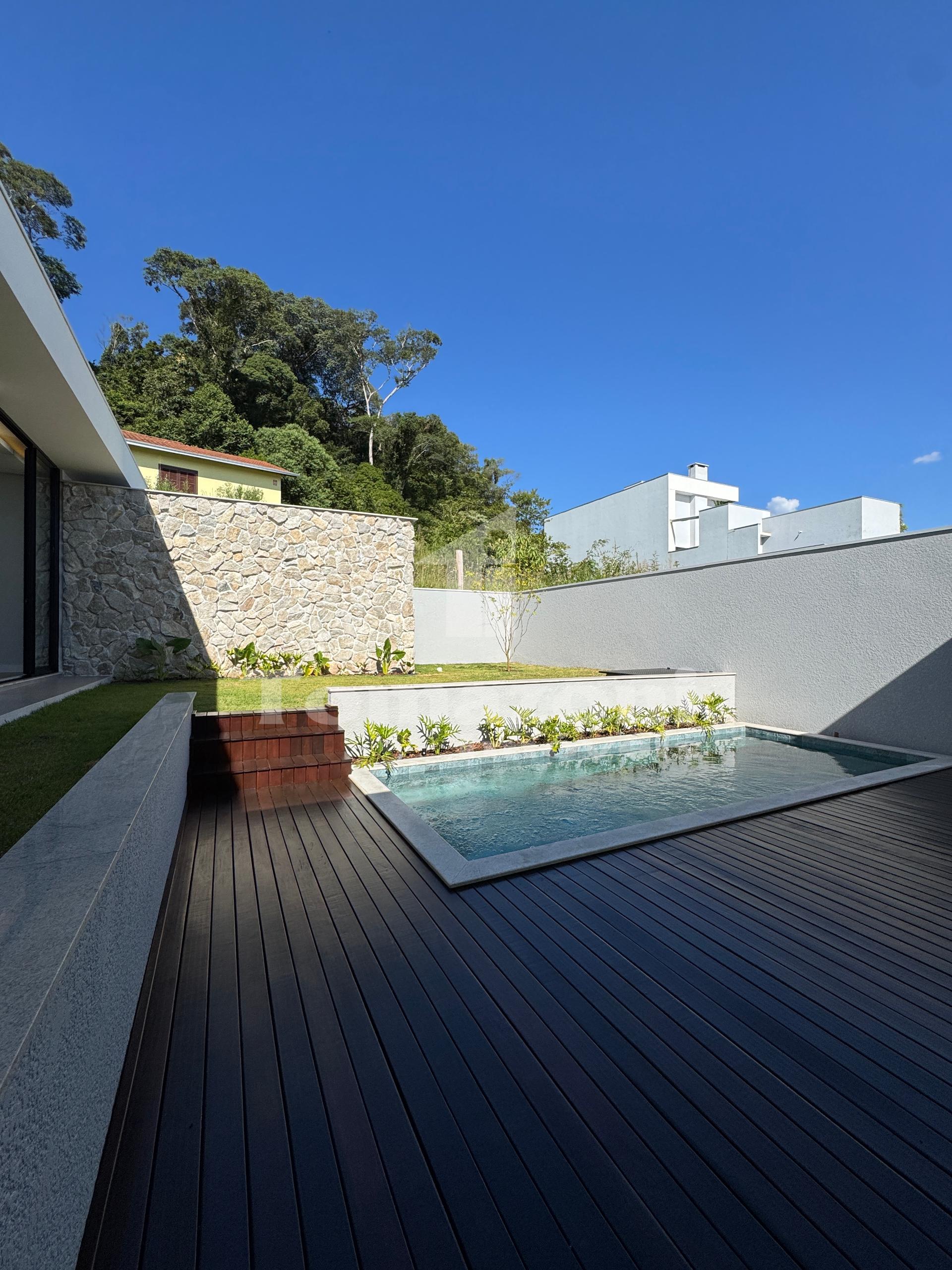 Descubra esta magnífica casa de alto padrão que combina sofisticação, conforto e lazer completo, ideal para quem busca bem-estar. Com três suítes espaçosas, incluindo uma deslumbrante suíte master com closet e uma relaxante banheira, cada detalhe foi pensado para proporcionar uma experiência única. A residência conta com um escritório funcional e garagem para dois carros. O verdadeiro destaque é a ampla área de festas, que se conecta à bela piscina, rodeada por exuberantes espaços verdes que trazem a natureza para dentro de casa, incluindo o banheiro e a sala. Localizada em um dos bairros mais valorizados e procurados da cidade, este imóvel é a perfeita união de elegância e tranquilidade, onde acabamentos de qualidade e um design moderno realçam a beleza e o conforto de cada ambiente.